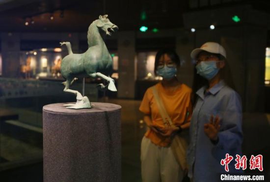 2020年5月18日,游客參觀銅奔馬。當(dāng)天是國際博物館日,游客來到位于甘肅蘭州的甘肅省博物館有序參觀,感受絲路文明。(資料圖) 高展 攝
