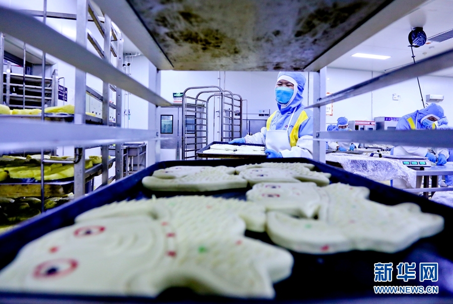 9月9日,甘肅省張掖市甘州區(qū)一月餅加工車間內(nèi),工作人員正忙碌制作中秋“土月餅”。新華網(wǎng)發(fā) (王將 攝)