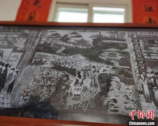 中新網(wǎng)蘭州11月17日電 (記者 楊娜 高瑩)“黛玉進(jìn)京”“寶黛初會(huì)”……耗時(shí)十余載,蘭州七旬藝人陶世清將《紅樓夢(mèng)》中的三十余個(gè)經(jīng)典場(chǎng)景搬上大理石。在一塊長(zhǎng)一米四,寬五十厘米的大理石上,人物的動(dòng)作、表情惟妙惟肖,桌椅帷幔、亭臺(tái)樓閣精致細(xì)膩。