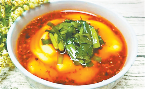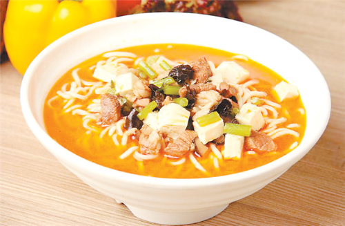 西峰的臊子面也很有地方特色,因其太辣,吃在嘴里不斷發(fā)出噓噓哨聲,故又稱“哨子面”。西峰臊子面制作獨特,吃法有趣,堪稱一絕。正如一首民歌唱到“十八省里(那個)轉(zhuǎn)一遍,好不過咱們西峰的臊子面”。西峰臊子面做工精細,制作分揉面、搟面、做湯、煮面幾個工序:“抻的面銀團團,搟的面紙一般,剁的面千條線,下到鍋里蓮花轉(zhuǎn),撈到筷子上打秋千,盛到碗里賽牡丹。”做成的臊子面條長如線,細如絲,長而柔韌,細而不斷,噴香美味,別具風(fēng)味。