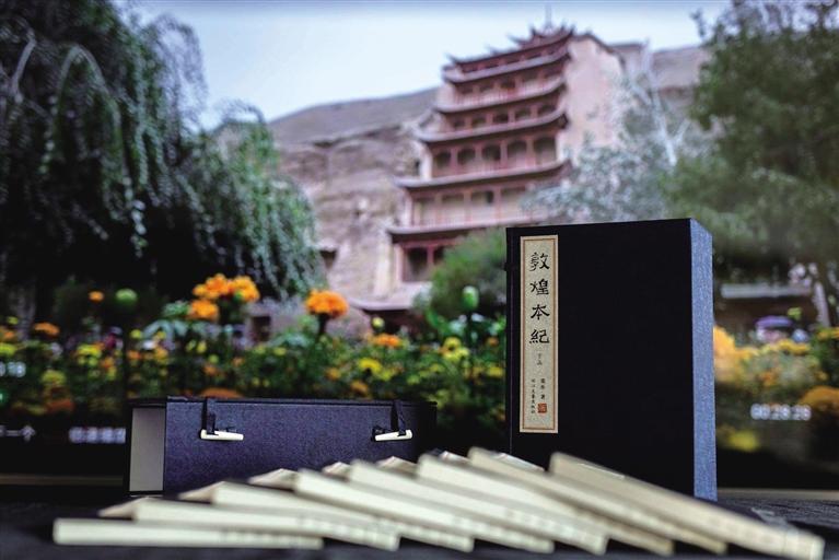 兩個(gè)月后,我如愿以?xún)??!抖鼗捅炯o(jì)》繁體線(xiàn)裝本(限量版)出品,兩函,每函八冊(cè),總計(jì)十六冊(cè),繁體豎排,全手工裝訂。技藝之美,工序之繁,裝幀之考究,未之見(jiàn)過(guò)!當(dāng)我打開(kāi)拿到手上時(shí)肅然起敬,自然會(huì)靜下來(lái),恭恭敬敬翻閱,你能感受到甘肅豐富的歷史文化資源、厚重的文化積淀和波瀾壯闊的滄桑巨變。正是偉大的藝術(shù)和同樣偉大的宗教,在敦煌建筑了人類(lèi)精神的輝煌莫高窟,人們生活在其中,才擁有現(xiàn)實(shí)人生意義的充實(shí)感和踏實(shí)感。