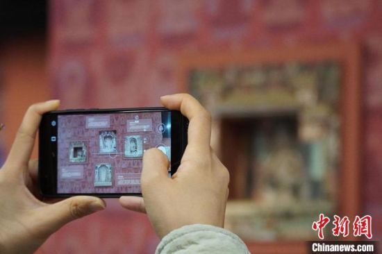 圖為觀眾欣賞數(shù)字復(fù)制壁畫?!【琶赖┰?攝
