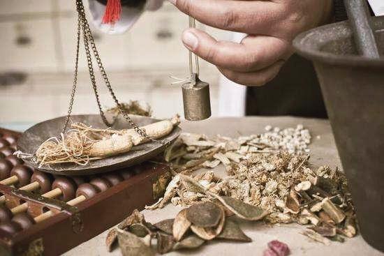 有時趁他空閑, 我便去他的中藥鋪里坐坐,最喜歡聞他藥鋪里散發(fā)的那種清苦的藥草香。而看他抓藥的過程,更是一種視覺享受。每次他先把藥方仔細瀏覽一遍,然后才開始抓藥。值得一提的是,他瞄一眼藥方,就能快速找到相應的中藥匣子。對于用量不太精確的藥物,他僅憑手抓,基本準確。對于用量必須精準的藥物,他會那樣耐心地放進一個叫“戥子”的小秤里稱一稱,添一點或減一點,然后將藥倒入柜臺上鋪好的麻色毛邊紙里,橫折一下,豎折一下,熟練地包起來,用細細的麻繩扎緊,反復交代幾句,遞給病人??粗@行云流水的動作,患者的疼痛仿佛也一下減輕了許多。