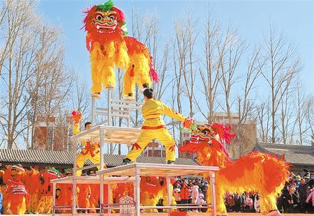 民樂(lè)縣高臺(tái)舞獅展雄風(fēng)。新甘肅·甘肅日?qǐng)?bào)通訊員 王 將