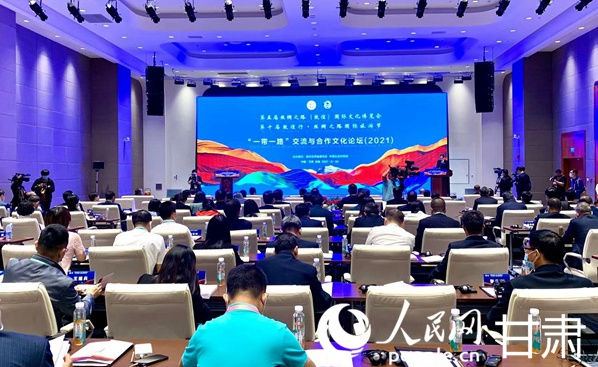 第五屆絲綢之路(敦煌)國際文化博覽會“一帶一路”交流與合作文化論壇(2021)在敦煌國際會展中心舉行。人民網(wǎng) 王文嘉攝
