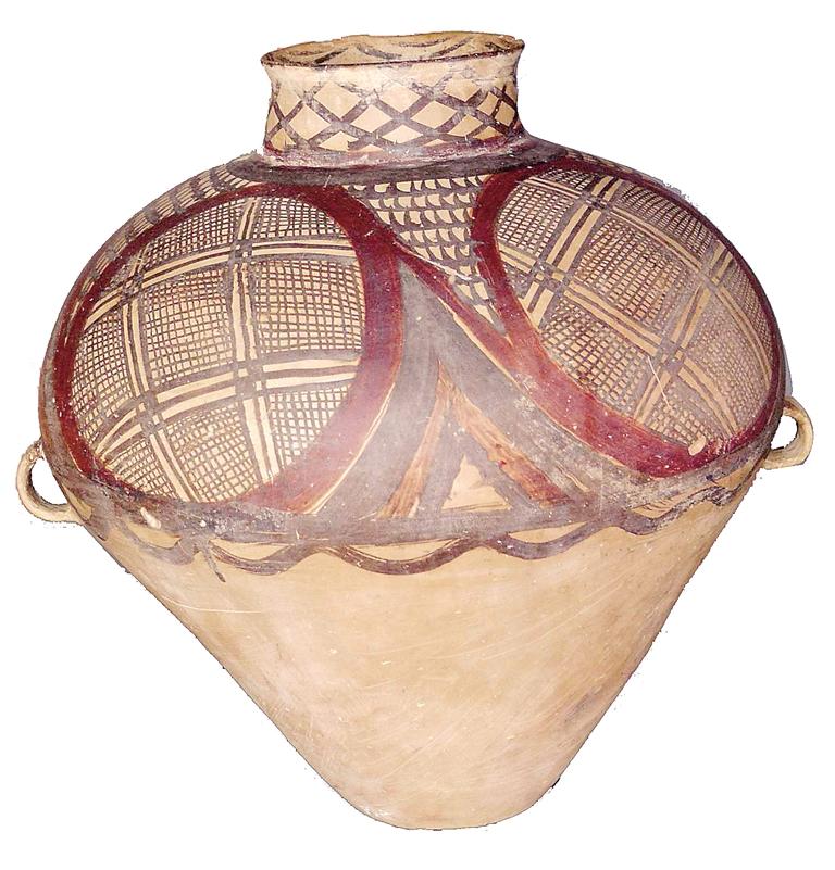 姓名:馬家窯文化半山類型四大圓圈雙耳彩陶罐 出生年代:距今約4650—4350年左右 住址:永靖縣博物館 體型:高46.6厘米,口徑15.6厘米,底徑12.2厘米 自我描述: 我是半山類型中的精品,屬于國家一級文物。泥質(zhì)紅陶,口沿微侈,直粗頸,闊肩,鼓腹,平底,腹有對稱雙耳,施黑紅彩,內(nèi)口飾水波紋六組,外口飾網(wǎng)紋,肩腹飾四大圓圈旋渦紋,間飾弧線鋸齒紋,腹中部飾寬帶紋,水波紋各一條,器型個體較大,胎體光滑,紋飾精致,色彩鮮艷。
