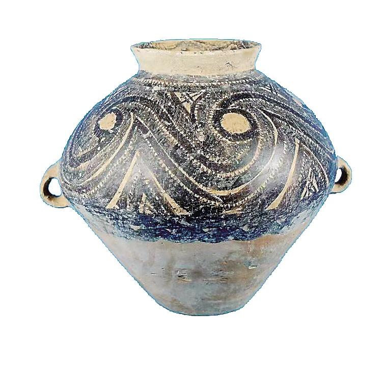 姓名:馬家窯文化半山類型漩渦紋雙耳彩陶罐 出生年代:距今約4650—4350年左右 住址:積石山縣博物館 體型:高34厘米,口徑15.7厘米,腹徑109.9厘米,底徑13厘米 自我描述: 我是國家二級文物。我們半山類型彩陶家族成員主要有大型貯藏器壺、甕、罐等。1988年積石山縣癿藏鄉(xiāng)吊地屲村一村民將我捐贈給博物館。泥質(zhì)紅陶造就的我,撇口,束頸,溜肩,腹部飾對稱的雙耳,施黑彩,肩腹部有四方連續(xù)漩渦鋸齒紋,下飾一周水波紋。胎體光亮,紋飾細膩規(guī)整。