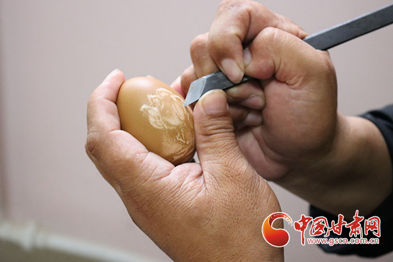 教學(xué)之外,劉財(cái)萬對傳播絲路文化同樣興趣濃厚。2018年劉財(cái)萬作為甘肅省殘聯(lián)代表之一參展絲綢之路(敦煌)國際文化博覽會(huì),并為會(huì)上沿線城市所展示的歷史文化、民俗風(fēng)情、現(xiàn)代文化創(chuàng)新成果所折服。從那之后,劉財(cái)萬開始將絲路文化融入蛋雕之中,讓蛋雕成為絲路文化歷史傳承的創(chuàng)新載體。