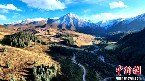 今年截至11月4日,中國(guó)東北地區(qū)大部、新疆、青海、西藏、內(nèi)蒙古、甘肅等地都已經(jīng)進(jìn)入氣象意義上的冬季。圖為薄雪覆蓋山巒和林區(qū)。