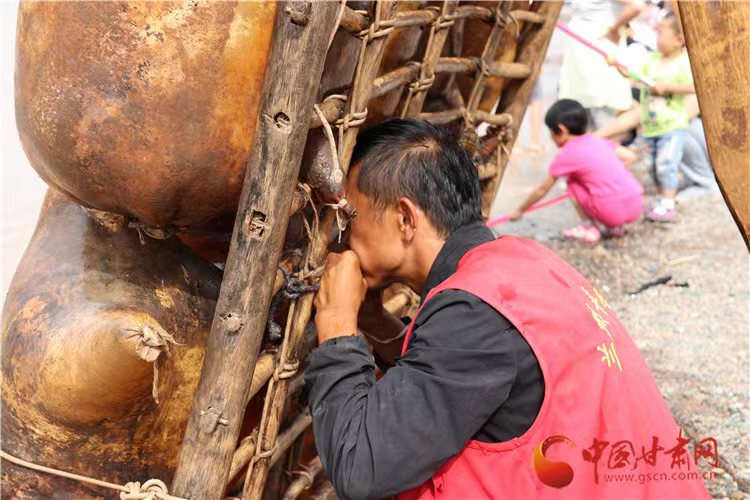 “九曲黃河十八彎,筏子起身闖河關。”羊皮筏子,舊稱“革船”,是黃河特有的風景和古老的運輸工具。蘭州羊皮筏子距今已有300多年歷史,作為河道上的短途運輸工具,除了擺運渡河商旅和兩岸百姓外,還用于商貿(mào)販運。
