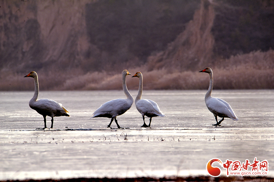 初冬,位于平?jīng)鍪徐o寧縣境內(nèi)的懸鏡湖迎來(lái)白天鵝在此組團(tuán)落腳,這是今年以來(lái)天鵝首次“光臨”懸鏡湖。