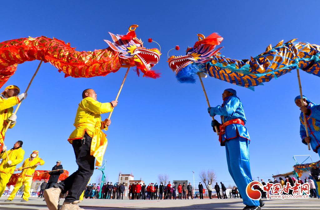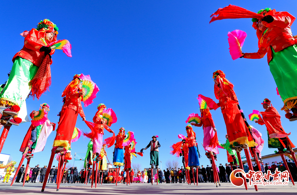 1月9日,甘肅省張掖市甘州區(qū)花寨鄉(xiāng)的社火表演隊(duì)正在文化廣場上加緊排練。