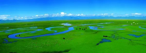 萬馬奔騰的山丹軍馬場、牛羊成群的??撇菰?、位處祁連腹地的黑河濕地、定西水草豐茂的狼渡濕地草原……一片片綠洲或是溫婉或是粗獷,它們迎接遠行的禽鳥,等候加急的春風(fēng),它們將甘肅的另一種可能寫在潤澤的水土里,栽在豐茂的草場中。