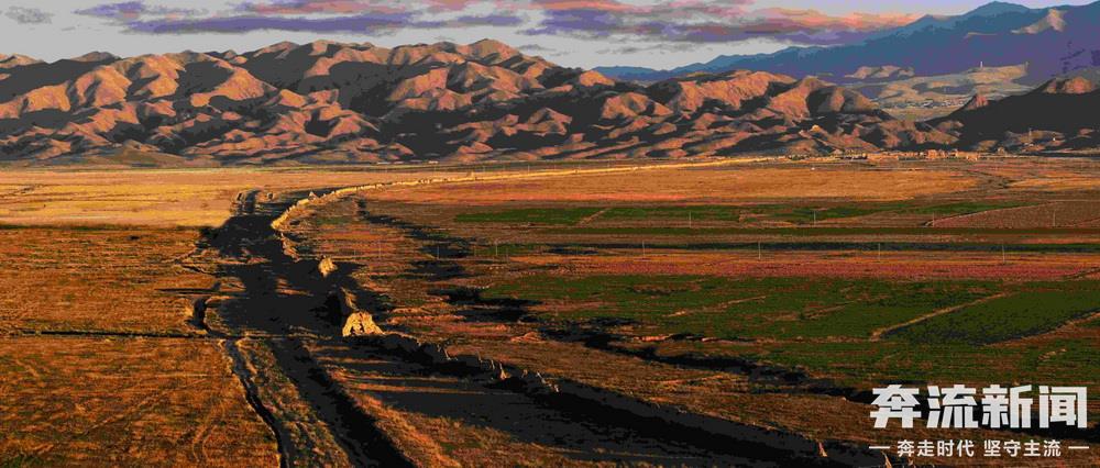 祁連山下,甘肅山丹漢明長城猶如一條巨龍蜿蜒盤旋在漫漫戈壁。