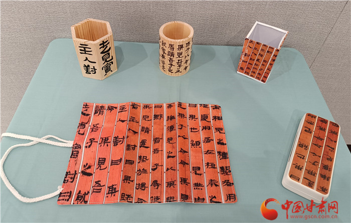 而在西北師范大學(xué)美術(shù)學(xué)院,簡牘則以文創(chuàng)的形式呈現(xiàn)美感,豐富著人們的生活。近日,由西北師范大學(xué)聯(lián)合甘肅簡牘博物館舉辦的“簡述中國 牘懂絲路”展覽正在展出,包含簡牘書法、文創(chuàng)成果兩部分。