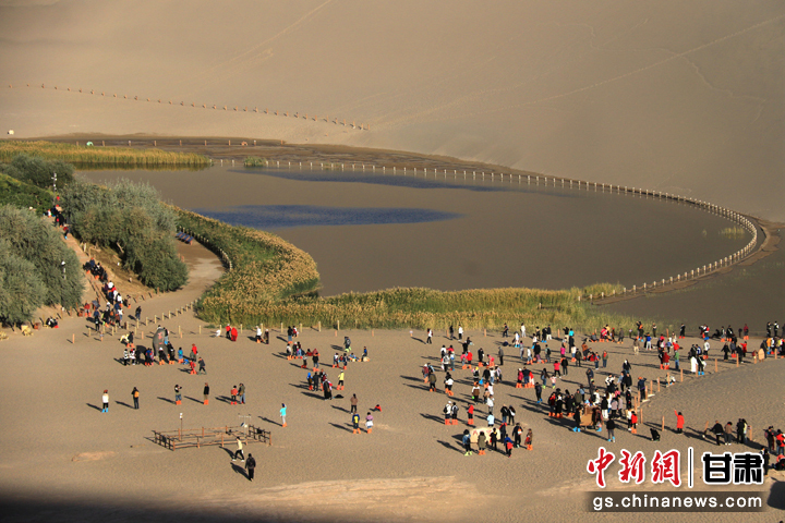 今年以來,甘肅省敦煌市旅游市場持續(xù)火熱。當?shù)刂包c鳴沙山月牙泉在今年中秋國慶假期期間,累計接待游客首次突破300萬人次,比2019年同期增長35.5%,創(chuàng)歷史新高。(張曉亮 習剛)