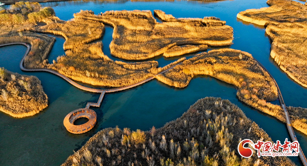 11月25日,在夕陽(yáng)映照下的甘肅張掖黑河濕地國(guó)家級(jí)自然保護(hù)區(qū),金色繁茂的蘆葦長(zhǎng)滿水面,碧水環(huán)繞其中,清風(fēng)吹過(guò),綠波蕩漾,成為市民和游客心曠神怡的好去處。