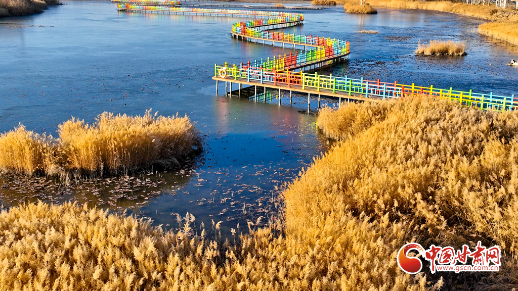 初冬時(shí)節(jié),張掖黑河濕地國(guó)家級(jí)自然保護(hù)區(qū)的蘆葦、蒲草等植物在秋風(fēng)、冬霜的吹拂下都變成了金黃色,密密的蘆花舞動(dòng)著裊娜的身姿,倩影婆娑,蘆葦叢里鳥(niǎo)鳴啾啾,整個(gè)濕地成為了一片金色的童話世界,讓人產(chǎn)生無(wú)限遐思。