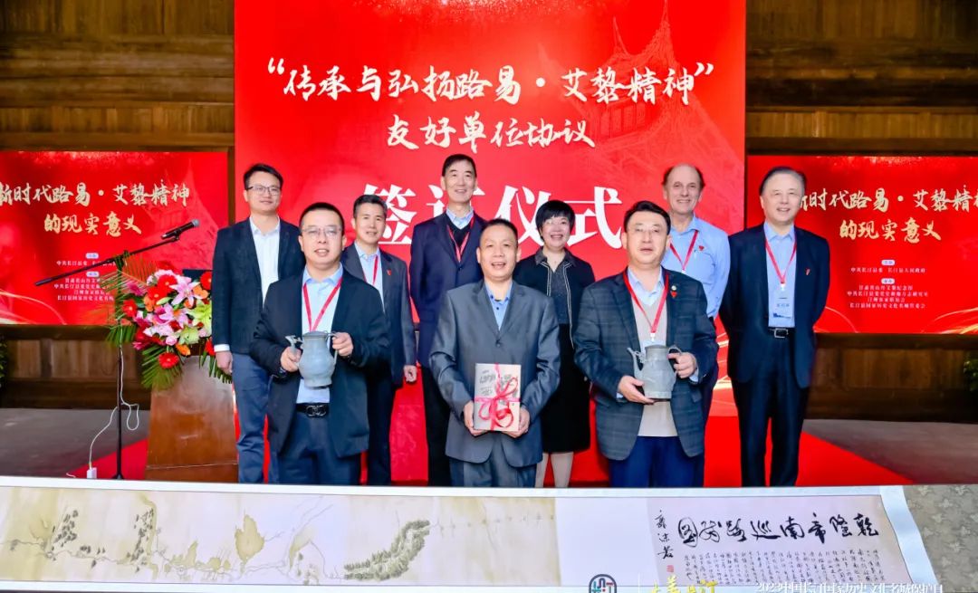 論壇上,遠隔重洋的新西蘭原總理珍妮·瑪麗·希普利和新中友好協(xié)會主席黎開盛做了視頻致辭。山丹艾黎紀念館、長汀國家歷史文化名城管委會、陜西寶雞長樂塬工業(yè)遺址公園管委會三方簽訂了“傳承與弘揚路易·艾黎精神”友好單位協(xié)議。三方互贈了紀念禮物,路易·艾黎捐贈的《乾隆帝南巡路線圖》珍貴文物復制藝術品落戶長汀。山丹艾黎紀念館館長作為活動的承辦方之一,做了《路易·艾黎人道主義精神在愛心社會建設中的現(xiàn)實意義》的交流發(fā)言。交流結束后,參會人員共同尋訪了艾黎在長汀的足跡,緬懷和追思他的精神。