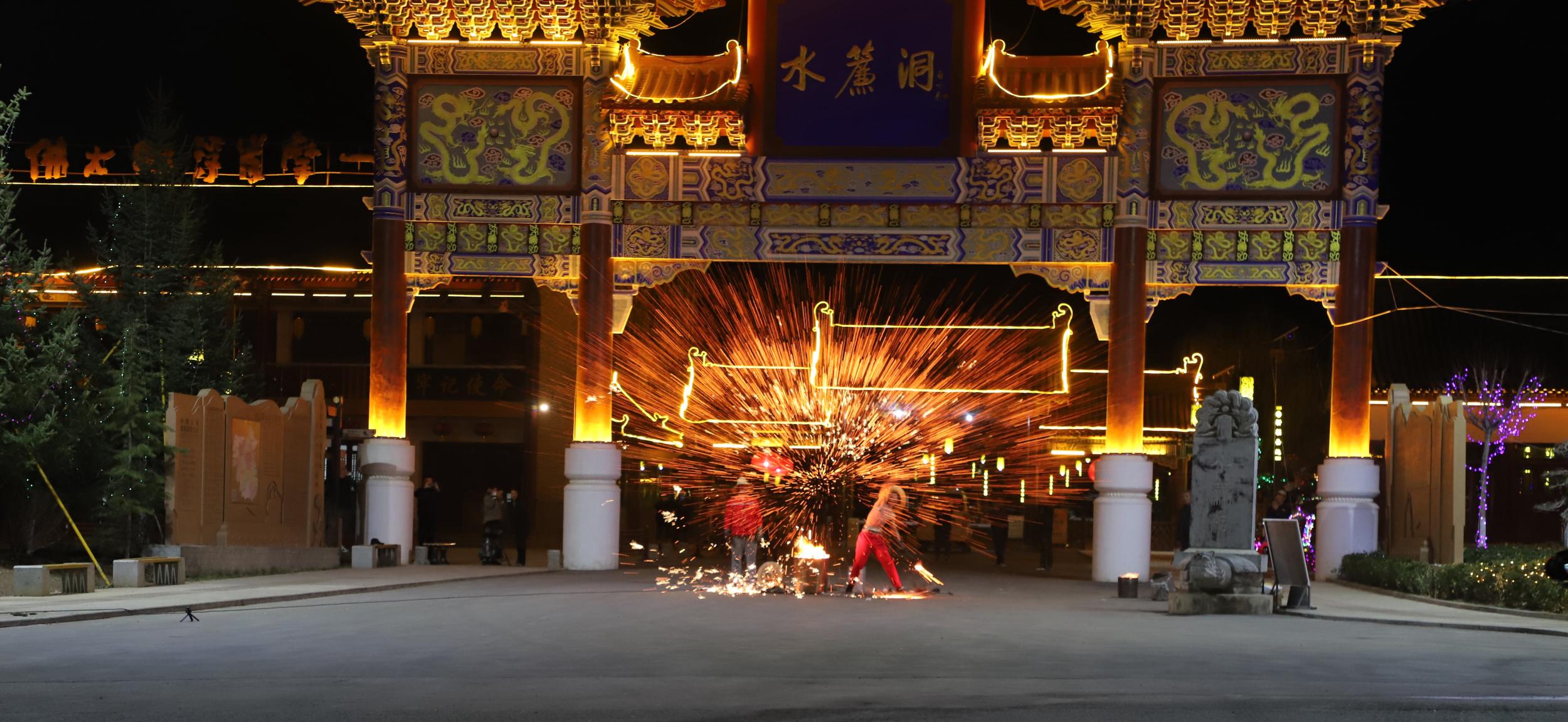 非遺絕技“打鐵花”點(diǎn)靚水簾洞景區(qū)不夜天