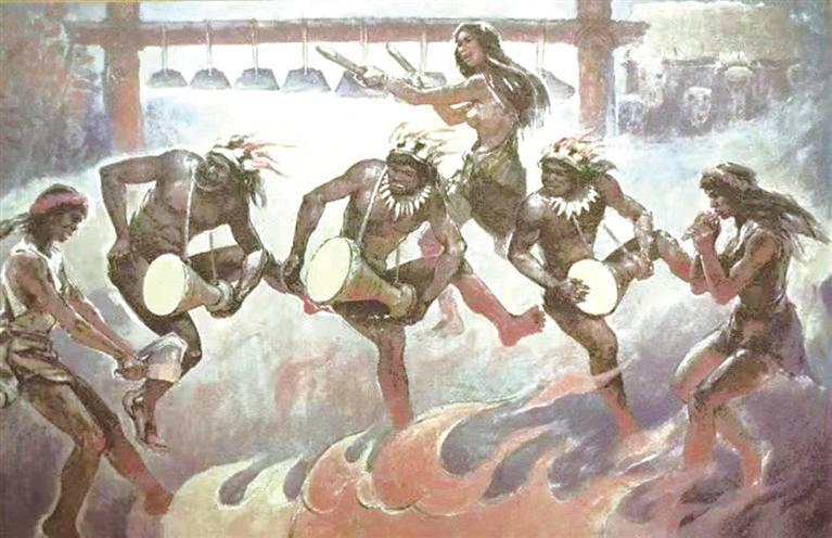 可以想見,在4000多年前的一個(gè)傍晚,先民們圍著篝火,系上繪有華麗紋飾的彩陶鼓,手拉手,和著呼喊的節(jié)奏,隨著歡快的鼓點(diǎn)唱著、跳著,來慶祝一天的收獲。