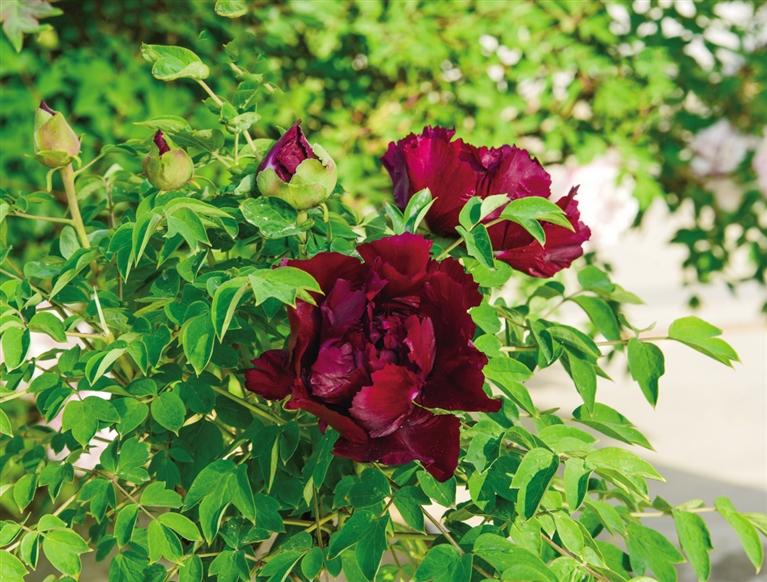 就像櫻花一樣,紫斑牡丹濃淡不一,淡粉、深粉、紫紅、月白……一朵朵,千朵萬(wàn)朵,似身著旗袍的女子,在蝶舞蜂鬧中,裊裊婷婷,醉了游客,也醉了等候她的有心人,醉了季節(jié)。所有的美好皆在切切地等候中妖媚心思,那姿態(tài)、那境界,又如水墨畫里款款而來(lái)的女子,對(duì)鏡帖花黃的婉約,晚睡后的慵懶,臨窗而讀的安逸,皆在綠葉間閃現(xiàn)柔媚。