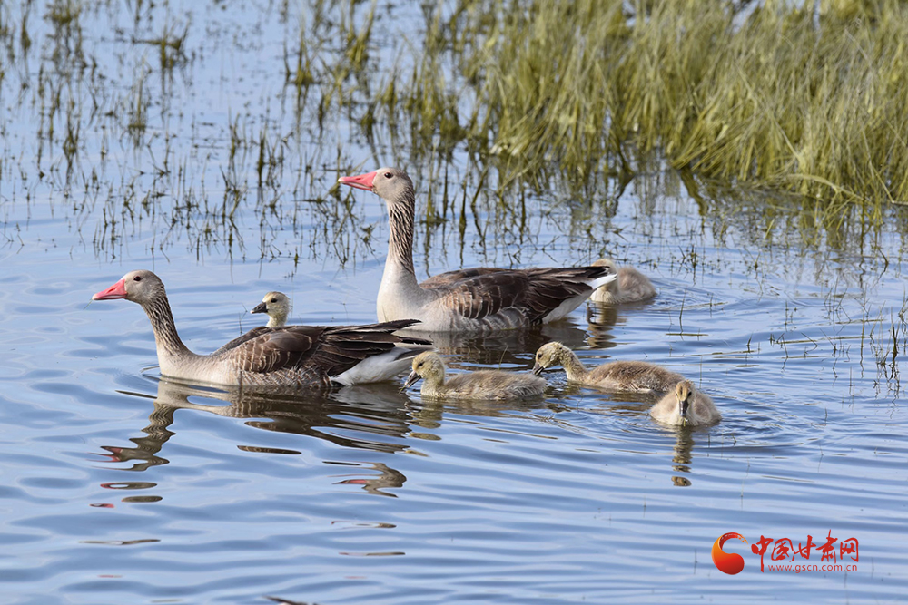 記者從甘肅敦煌陽關(guān)國家級自然保護區(qū)獲悉,近日,夏季繁殖候鳥灰雁首窩寶寶已出窩,這也是陽關(guān)濕地今年迎來的第一窩鳥寶寶。