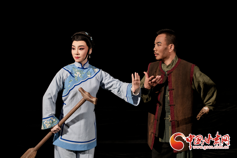 值得一提的是,演員的舞臺表演融入了“地游子步”“側身搖晃”等隴劇特有的身段和表演樣式,彰顯出濃濃的隴劇藝術特色。