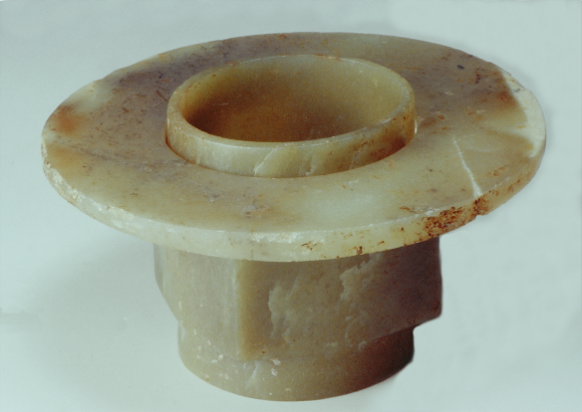 這些玉器長期以來被認為是西周器物,但從材質(zhì)到不規(guī)則的形制及雕琢工藝特征觀察,無疑是齊家文化的器物。它們雖然不能套疊使用,但可配對組合。現(xiàn)藏寶雞市鳳翔區(qū)博物館。