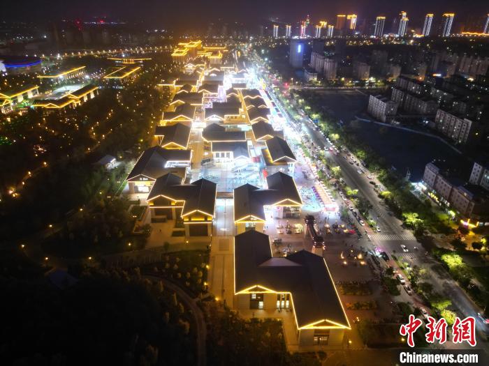 5月中旬,當夜幕降臨、華燈綻放,甘肅武威市涼州區(qū)“星光夜市”彩燈點亮夜空。(無人機照片) 戴文昌 攝