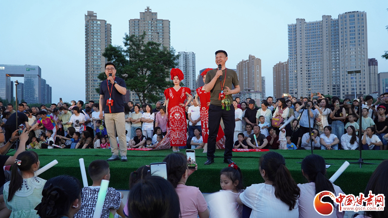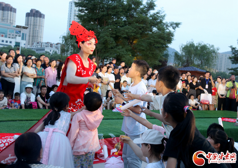 來自鎮(zhèn)原縣文化館的工作人員身著剪紙服飾,為現(xiàn)場(chǎng)觀眾送上慶陽香包,向觀眾們展示慶陽獨(dú)特的鄉(xiāng)土風(fēng)情。
