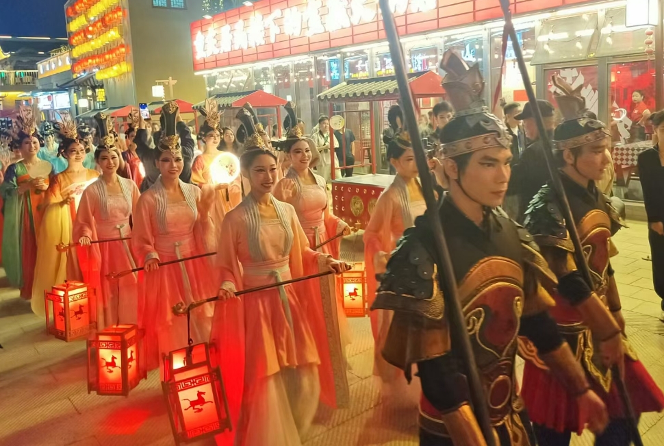 在漢唐天馬城西涼大劇院,大型沉浸式情景舞臺(tái)劇《天馬行》,用美輪美奐的舞美場面再現(xiàn)漢文化歷史,講述涼州的千年風(fēng)華,帶領(lǐng)觀眾進(jìn)行一次古今穿越之旅。