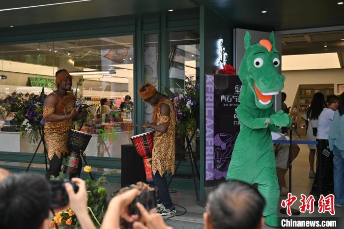 6月19日,甘肅省博物館藝術(shù)生活館在甘肅蘭州開(kāi)館。該館是甘肅省博物館打造的一處復(fù)合型高價(jià)值文化空間,融合了咖啡、烘焙、展覽、藝術(shù)書(shū)店、文創(chuàng)銷(xiāo)售等多樣化業(yè)態(tài)。圖為綠馬真人玩偶(右一)熱舞吸引游人。中新社記者 李亞龍 攝