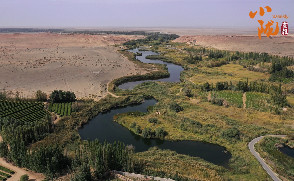 幾灣清水,挺拔修直的白楊樹,高大密集的蘆葦蕩,蔥蔥郁郁的灌木林綿延數(shù)公里,野麻灣已成為陽關(guān)濕地至水尾綠洲過渡帶一道獨特的風(fēng)景線。