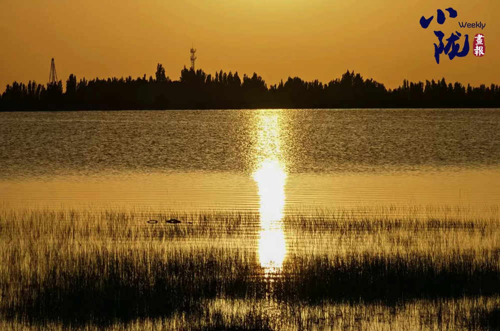 落日余暉下,濕地的水面上泛著暖融融的金光,顯得那么靜謐。此時的濕地,演繹著一個和白天完全不同的自己,似一幅色彩斑斕、意蘊萬千的畫卷。
