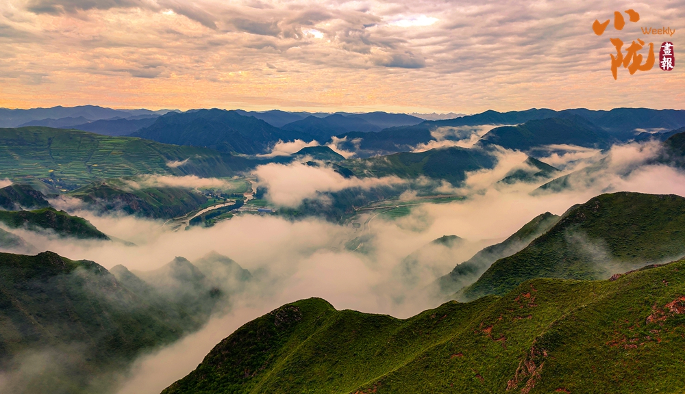 雨后放晴,山谷中的霧氣匯集升騰,化作云海環(huán)繞山峰,光線柔和空氣清涼,放眼望去,白云、青山、洮河、云海構(gòu)成唯美畫卷。