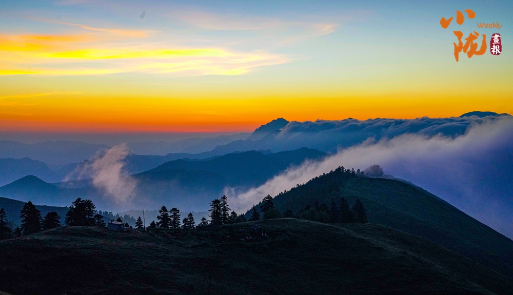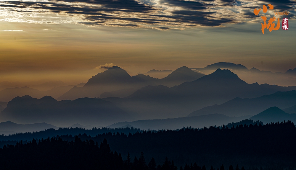 傍晚時(shí)分,天空變得絢爛多彩,晚霞映照白霧,起伏著山巒,坡地和浪漫;幾處白墻黛瓦的民居,升起炊香,滿目清爽之氣彌漫,用詩意繪就生態(tài)家園。
