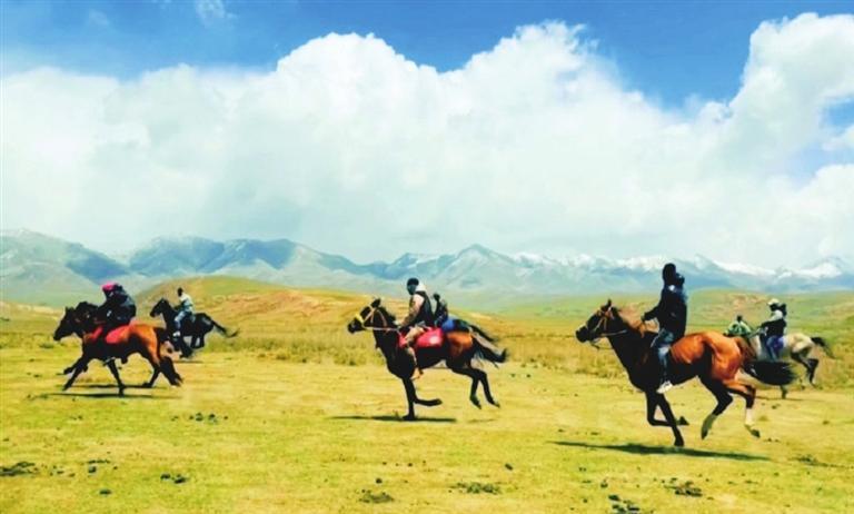 幾百匹賽馬組成的馬隊(duì)表演方陣,像團(tuán)團(tuán)移動(dòng)的彩云貼地而來,馬兒昂首蒼穹,嘯嘯歡鳴,圍觀的人群發(fā)出陣陣歡呼,這是草原人對馬的情感最熱烈的釋放。
