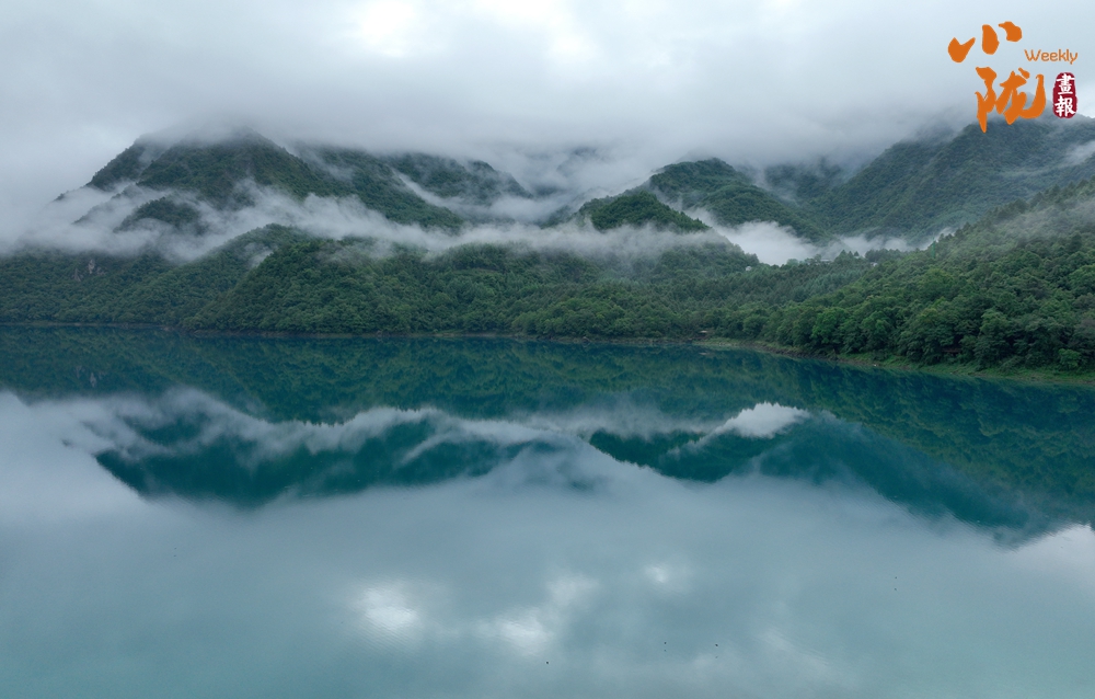 雨后,文縣天池云霧繚繞,翠綠的山巒、碧綠的湖水,相互輝映,美輪美奐,宛若仙境。