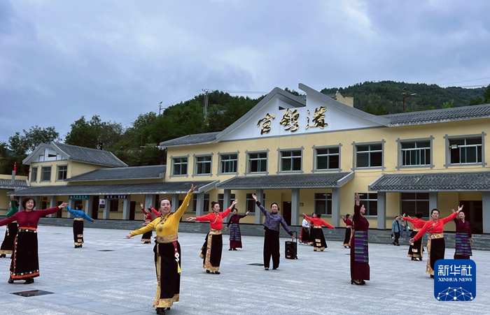 在官鵝溝大景區(qū),伴隨著當?shù)卦瓌?chuàng)旅游歌曲《娥嫚》的旋律,游客們和身著民族服飾的表演者在山水之間載歌載舞,現(xiàn)場不時響起陣陣掌聲和歡呼聲。“如詩如畫的美景,獨具魅力的民族文化,歌舞聲把節(jié)日氣氛拉滿。”周敏說。