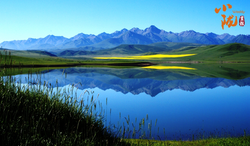 西大河水庫(kù)碧亮賜透,宛若草地上鑲嵌的藍(lán)寶石,遠(yuǎn)處的牛羊、油菜花和壯麗的祁連山倒影水中,像一幅水彩畫(huà)。