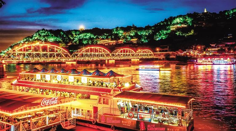 作為蘭州游的必打卡景點,整個國慶假期中山橋上的游客絡繹不絕。每到傍晚,中山橋上更是人山人海,“金城壹號”“悠游蘭州號”“黃河啤酒號”等游輪載著南來北往的游客穿梭于黃河之上,為黃河之濱增添了一道流動的風景。