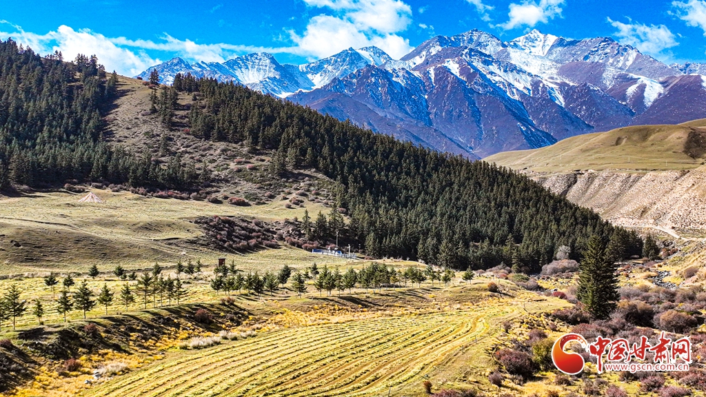 10月9日,在祁連山國家公園甘肅省張掖市肅南裕固族自治縣大河鄉(xiāng)段,一幅秋日畫卷在藍(lán)天白云的映襯下徐徐展開。這里,雪山、森林、草原、濕地、峽谷、河流等多種自然景觀交相輝映,美不勝收。