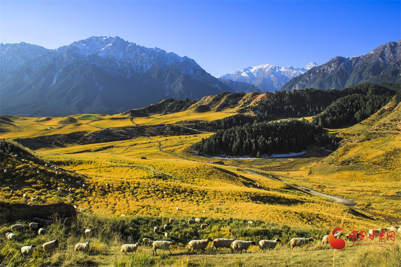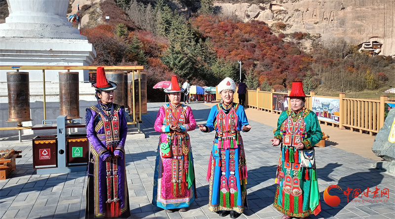 雪山之下,層林盡染,秋日的馬蹄寺美不勝收,裕固歌聲從北寺傳來,身著裕固服飾的歌者為游客帶來最炫民族風。