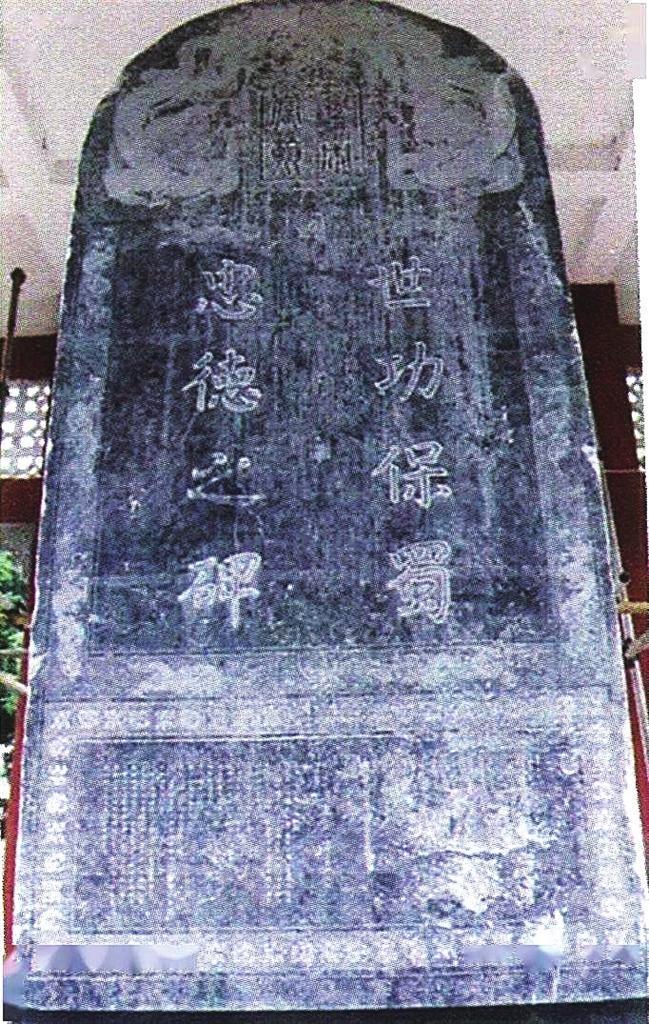 碑陽額刻二龍圖,篆“皇帝宸翰”,字徑0.22米,碑身刻宋寧宗書“世功保蜀忠德之碑”八字,楷書豎行2行,行間刊有篆書“敕令寶璽”和楷書“修政殿書”八個(gè)小字,四周環(huán)刻八龍騰云圖。碑文刻吳挺之子吳曦自記《感恩表記》,碑文楷書計(jì)8461字,內(nèi)容記載吳氏三代抗金保蜀的功績。