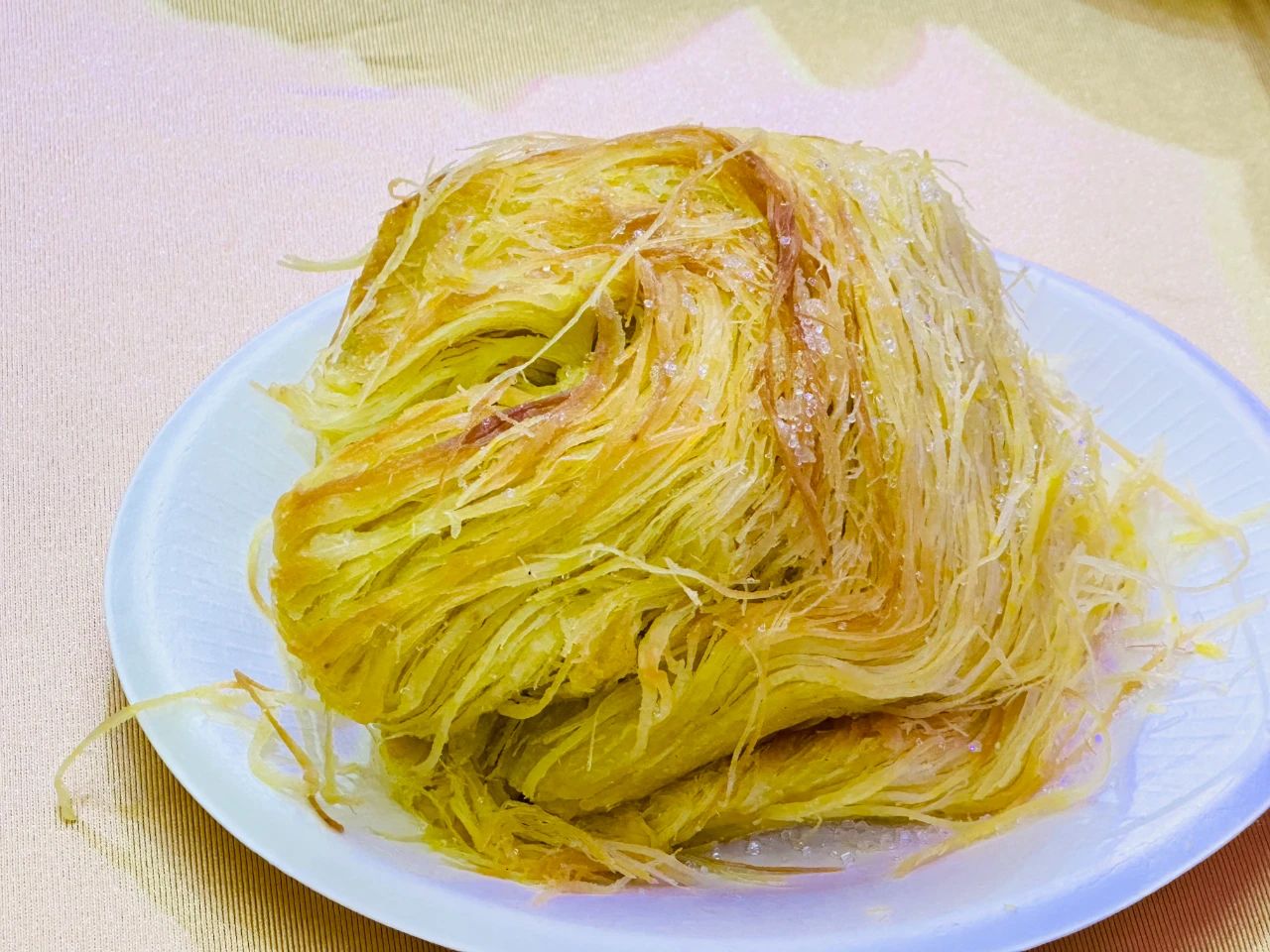 一窩絲的制作是一門精細的藝術(shù)。面粉、水、鹽和油巧妙混合,揉成光滑面團后,反復地拉伸、對折,直至那面團細如發(fā)絲,再盤成一團放入烤箱中,逐漸變得金黃酥脆。吃起來,那口感是層層疊疊的酥,帶著淡淡的油香,每一根絲在齒間斷裂,釋放出獨特的風味。