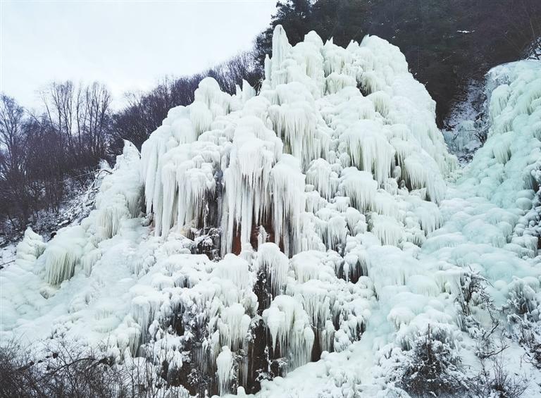 渭河源東源景區(qū)的冰掛。