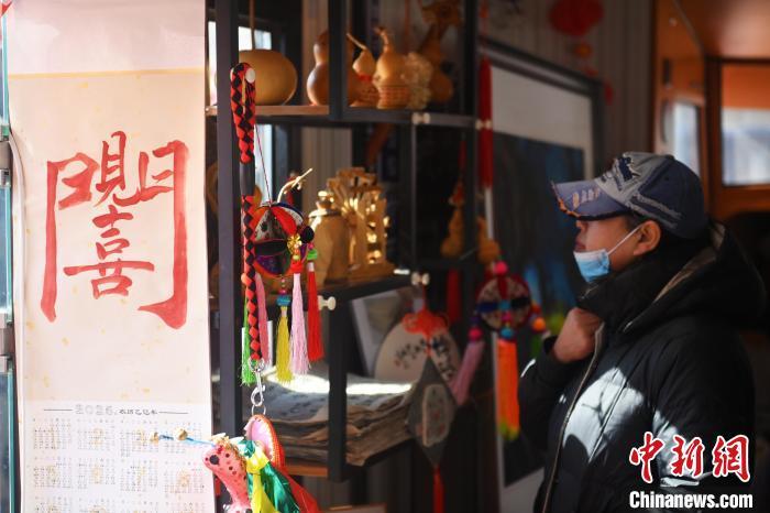 2月8日,甘肅省蘭州市城關(guān)區(qū)“非遺年貨購(gòu)物月”活動(dòng)現(xiàn)場(chǎng),游人選購(gòu)非遺文創(chuàng)產(chǎn)品。 中新社記者 李亞龍 攝