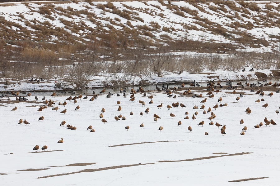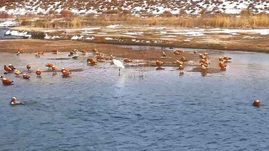 近日,甘肅秦王川國家濕地公園迎來候鳥遷徙高峰,國家二級保護(hù)動物斑頭秋沙鴨、白骨頂,成群結(jié)隊的赤麻鴨、綠頭鴨以及優(yōu)雅的白鷺構(gòu)成“萬羽翔集”的生態(tài)畫卷,印證濕地生態(tài)系統(tǒng)的顯著改善。