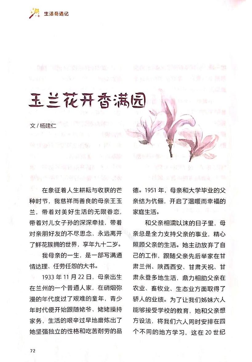 如果生命是一樹(shù)花開(kāi),母親便是一朵最燦爛、最耀眼的玉蘭。